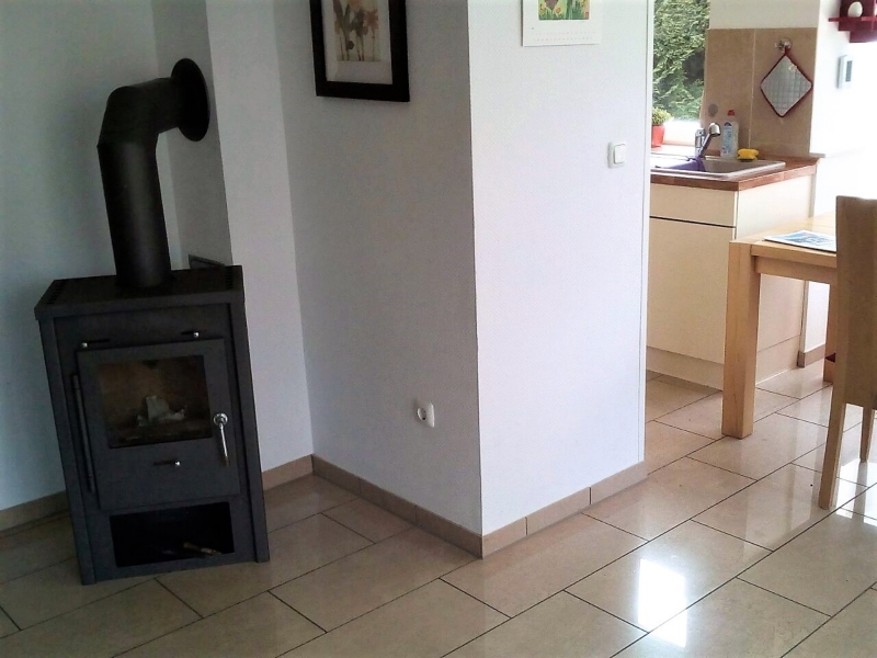 Die Küche ist mit Spülmaschine, Kaffeemaschine, Ceranfeld und reichlich Zubehör komfortabel ausgestattet. Der Essbereich ist großzügig und hell gestaltet.